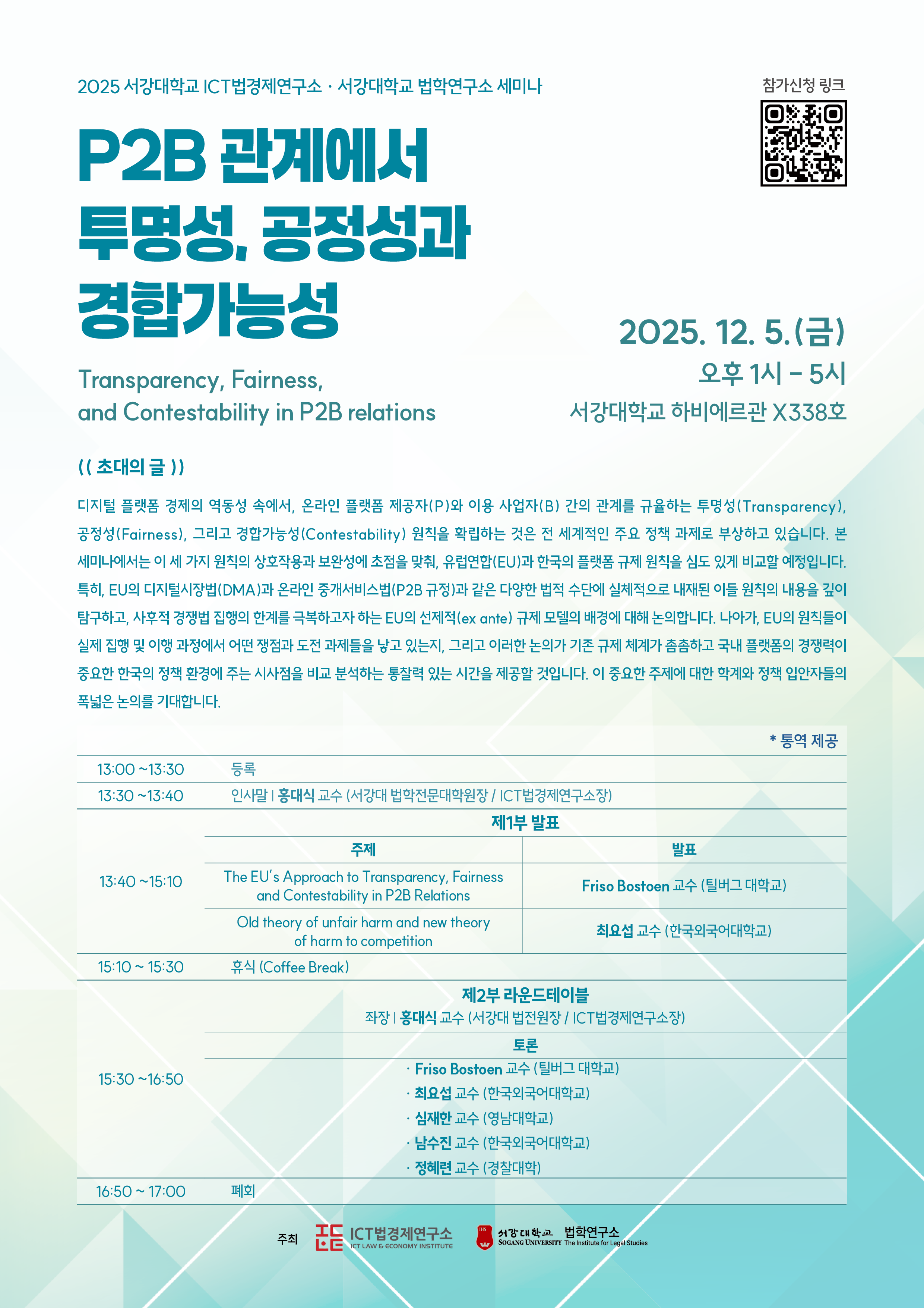 새 정부 AI 법정책 과제와 제언홍대식 교수(서강대 법학전문대학원)[원문 링크]1. 서론AI 기술의 발전은 경제, 사회, 문화 등 다양한 분야에 큰 영향을 미치고 있다. 특히, 생성형 AI의 출현은 플랫폼 경제에 새로운 도전과 기회를 제공하고 있다. 이에 따라, 새 정부는 AI 기술의 안전하고 책임 있는 사용을 보장하기 위한 법적, 정책적 대응으로서, AI 법정책을 재정비하고, 새로운 규제와 정책을 마련해야 할 필요성이 대두되고 있다. 2. 생성형 범용 모델 출현에 따른 플랫폼 경제의 변화 예측AI 기술이 도입되기 전, 플랫폼 경제는 기존의 규제와 경쟁 정책에 의해 관리되었다. 그러나 생성형 범용 모델의 출현으로 인해 플랫폼 경제의 구조와 경쟁 환경이 변화하고 있다. 특히, 생성형 AI는 단순한 기술적 발전을 넘어 자율적인 "에이전트" 시스템으로 진화하고 있으며, 이는 기업의 핵심 워크플로우를 재정의하고 있다. 생성형 범용 모델의 출현은 플랫폼 경제에 큰 변화를 가져올 것으로 예상된다. 첫째, AI 기술의 발전으로 인해 플랫폼 간의 경쟁이 더욱 치열해질 것이다. 둘째, AI를 활용한 새로운 비즈니스 모델이 등장하면서 기존의 규제 체계가 무력화될 가능성이 있다. 셋째, AI의 윤리적 문제와 개인정보 보호 이슈가 더욱 부각될 것이다. 국내 AI 시장의 경우 기업들의 지속적인 AI 도입 확대, 정부의 디지털 플랫폼 투자, 그리고 새로운 소비자 기기와의 AI 통합이 시장 성장을 견인할 것이다. 그러나 국내 시장의 참여자들은 다음과 같은 핵심적 도전 과제에 직면하고 있다. 첫째, 미국, 중국에 비해 최고 수준의 AI 연구 및 엔지니어링 인력이 절대적으로 부족한 점, 둘째, GPU 등 고성능 컴퓨팅 파워 확보에 드는 막대한 비용은 여전히 중소기업과 스타트업에게 높은 진입 장벽으로 작용한다. 셋째, 양질의 데이터를 확보하고, 개인정보를 보호하며, 기업 내 데이터 사일로(silo)를 극복하는 것은 지속적인 과제다. 넷째, 시장은 두 가지 방향으로 재편될 가능성이 높다. 네이버, SKT와 같은 소수의 'AI 주권' 플랫폼을 중심으로 한 '통합'과, 특정 산업 문제를 깊이 파고드는 '버티컬 AI' 스타트업 생태계의 '분화'가 동시에 일어날 것이다. 3. 생성형 범용 모델 출현에 따른 주요 법정책적 과제 (1) 규제의 부상과 책임감 있는 AI유럽연합(EU)의 AI 법(AI Act)을 필두로 한 규제 환경의 등장은 '책임감 있는 AI'를 단순한 윤리적 구호에서 핵심적인 경쟁 우위 및 시장 진입 장벽으로 변모시키고 있다. 새 정부는 이러한 글로벌 규제 동향을 반영하여 국내 AI 법정책을 수립해야 한다.(2) 기술과 비즈니스의 균형생성형 AI 시장은 기초 모델의 성능에서 특정 비즈니스 워크플로우를 자동화하고 통합하는 능력으로 경쟁의 축이 이동하고 있다. 새 정부는 기술 발전과 비즈니스 적용 간의 균형을 맞추는 정책을 마련해야 한다.(3) 데이터 보안과 프라이버시AI 시스템의 데이터 보안과 프라이버시 문제는 중요한 과제이다. 특히, 고위험 AI 시스템의 경우 데이터 보안과 프라이버시를 보장하는 법적 장치가 필요하다. (4) 경쟁과 거래 과정에서의 문제생성형 AI 서비스는 경쟁과 거래 과정에서 다양한 문제를 야기할 수 있다. 예를 들어, 데이터 독점, 알고리즘 편향, 개인정보 보호 등의 문제가 발생할 수 있다. 이러한 문제를 해결하기 위해서는 공정한 경쟁 환경을 조성하고, 투명성을 강화하는 정책이 필요하다. 5. 글로벌 주요 소송 동향글로벌 주요 소송 동향을 살펴보면, AI 기술과 관련된 다양한 법적 분쟁이 발생하고 있다. 예를 들어, 알고리즘의 공정성, 데이터 사용의 적법성, 개인정보 보호, 잠재적 경쟁제한 행위 등의 이슈가 주요 쟁점으로 떠오르고 있다. 특히 잠재적 경쟁제한 행위와 관련해서는 미국 연방지방법원의 U.S. v. Google LLC 사건에서 구글의 생성형 AI '제미나이(Gemini)'를 기기에 선탑재하고 기본값으로 설정하는 계약과 같이 지배적 플랫폼의 생성형 AI 통합으로 인해 발생하는 경쟁 문제가 쟁점으로 다루어지고 있다. 이러한 동향을 참고하여 국내 법정책을 마련하는 데 반영해야 한다. 6. 새로운 정책 개발 또는 정책 변화를 모색하기 위한 주요 쟁점새로운 정책을 개발하거나 기존 정책을 변화시키기 위해서는 몇 가지 주요 쟁점을 고려해야 한다. 첫째, AI 기술의 발전 속도에 맞춘 유연한 규제 체계가 필요하다. 둘째, AI의 윤리적 문제를 해결하기 위한 법적 장치가 마련되어야 한다. 셋째, 개인정보 보호를 위한 강력한 법적 보호 장치가 필요하다. 이러한 쟁점을 바탕으로 정책을 마련해야 한다. 7. 새로운 정책 개발 또는 변화의 방향새로운 AI 법정책은 다음과 같은 방향으로 개발되어야 한다. 첫째, 허가 우선, 사후 규제의 접근 방식을 채택해야 한다. 둘째, 비례원칙에 기반한 규제 체계를 마련해야 한다. 셋째, 적응형 및 학습 접근 방식을 도입하여 AI 기술의 발전에 대응해야 한다. 넷째, 결과 기반의 규제 체계를 마련하여 실질적인 효과를 거둘 수 있도록 해야 한다. 다섯째, 협업형 다중 이해관계자 참여를 통해 다양한 의견을 수렴해야 한다. 여섯째, 자율 및 공동 규제를 통해 유연성과 민첩성을 확보해야 한다. 마지막으로, 전문